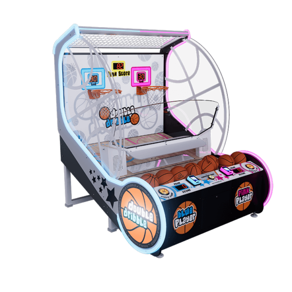 The Double Dribble Basketball Arcade by ICE offers a fun, interactive experience with single-player, two-player, and competitive modes. It features a 15-second bonus round, bright LED lighting, and transparent side panels for visibility. Perfect for arcades and family entertainment centers, it delivers exciting gameplay for all ages. Double Dribble Basketball Arcade game